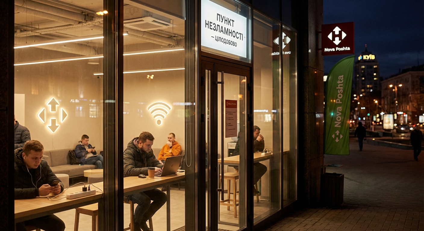 Одинадцять відділень Нової пошти в Києві тепер працюють цілодобово, виконуючи функції пунктів незламності. Вони надають поштові послуги, а також забезпечують комфорт та безпеку для відвідувачів у будь-який час доби.